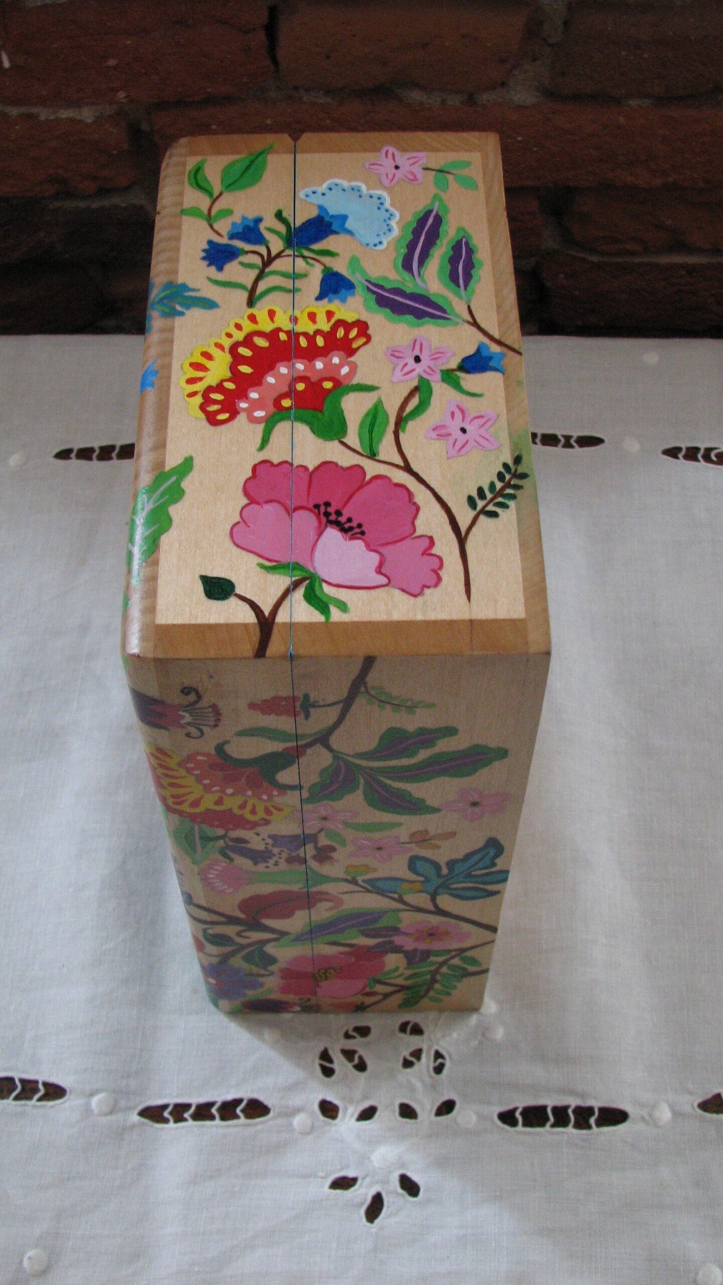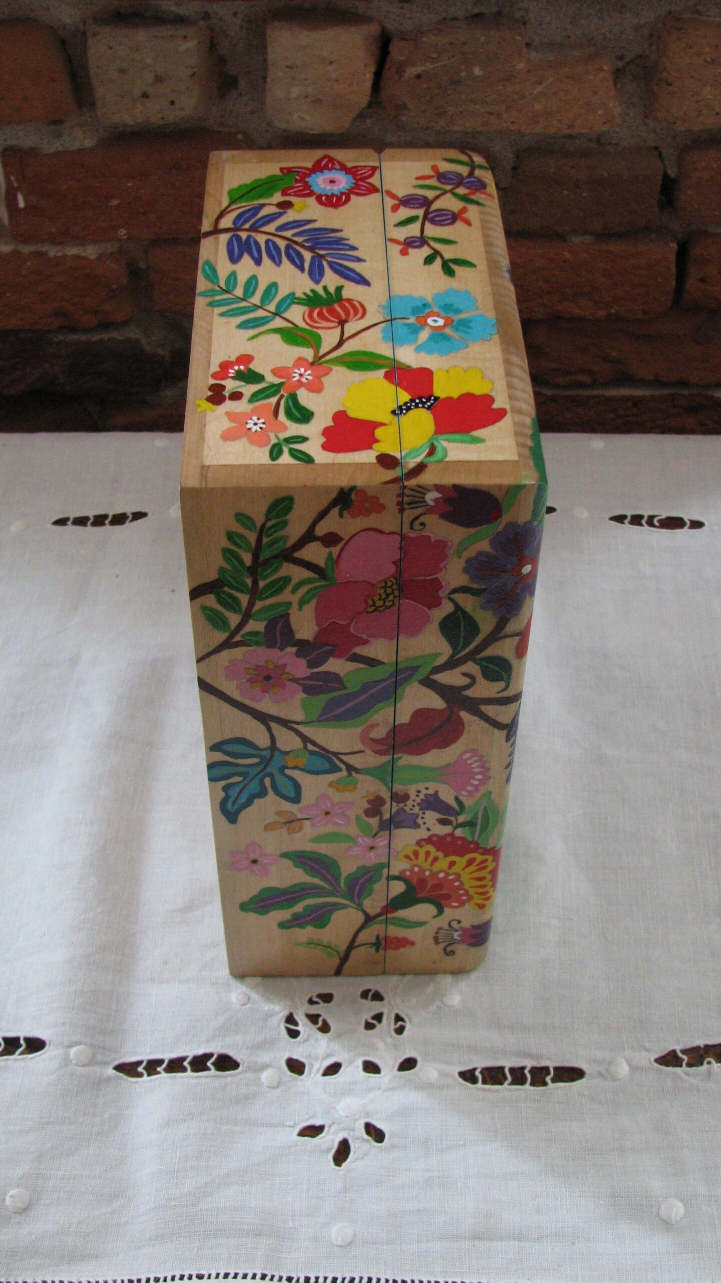 Cette grosse boite à thé entièrement (sauf l’arrière) recouvertes de fleurs multicolores sera