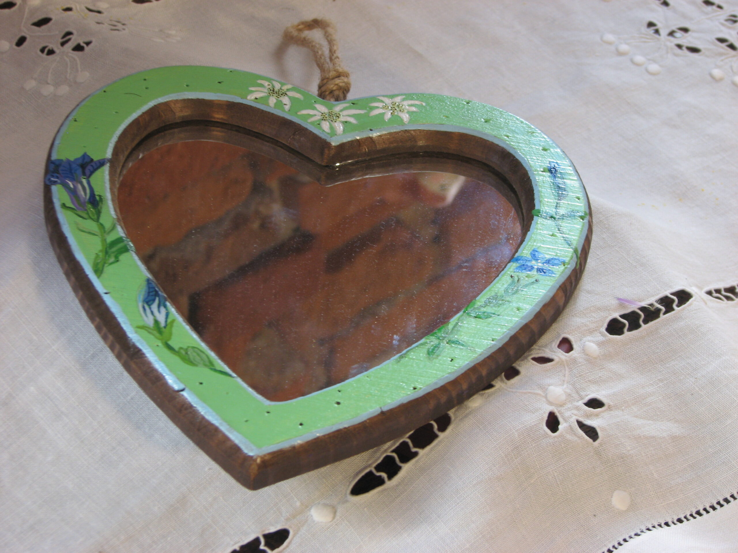 Accueil / Chambre d’enfant / Miroir coeur savoyard Miroir coeur savoyard Catégorie : Chambre d’enfant Description Description Autour de ce coeur, les fleurs alpines, gentianes et edelweis. Il peut convenir à une chambre d’enfant ou d’adulte. Taille: h: 20 cm, l: 18,5 cm Prix: 35 € Produits similaires Sac aux danseuses russes Sac fleuri Boite à cartes au coq Pot à crayons Pinocchio