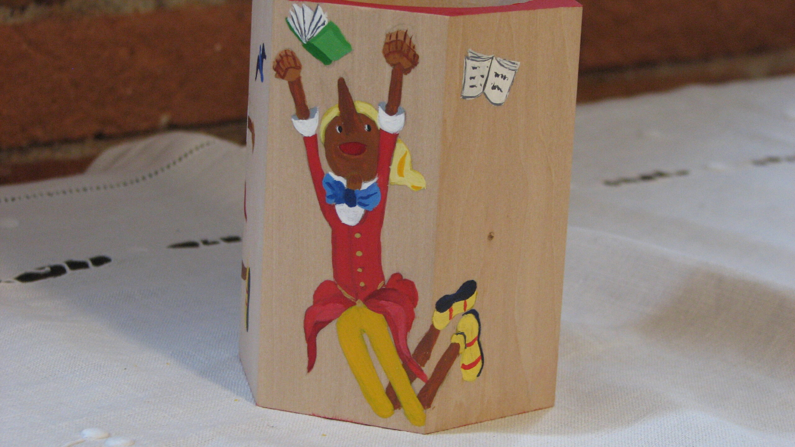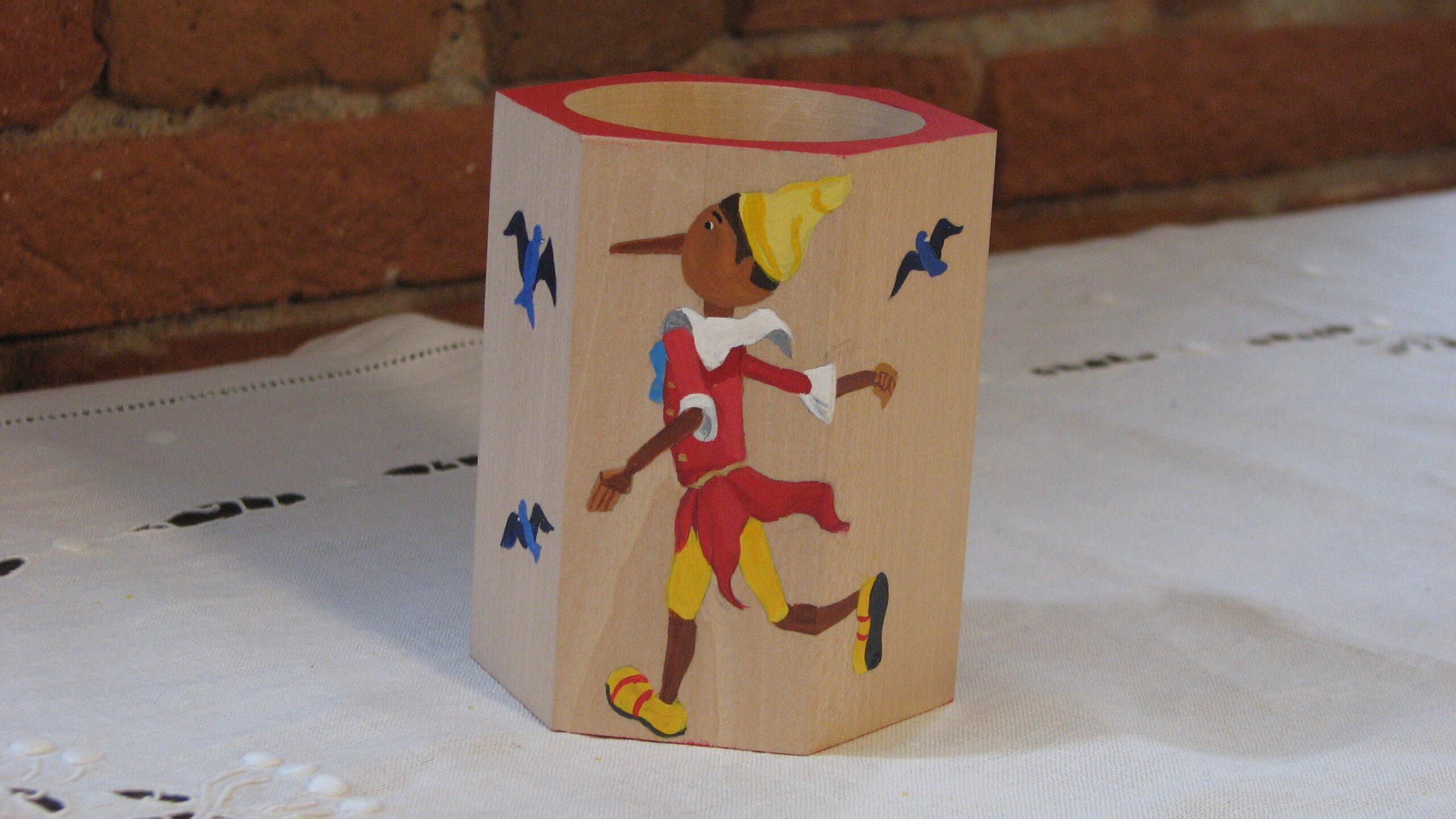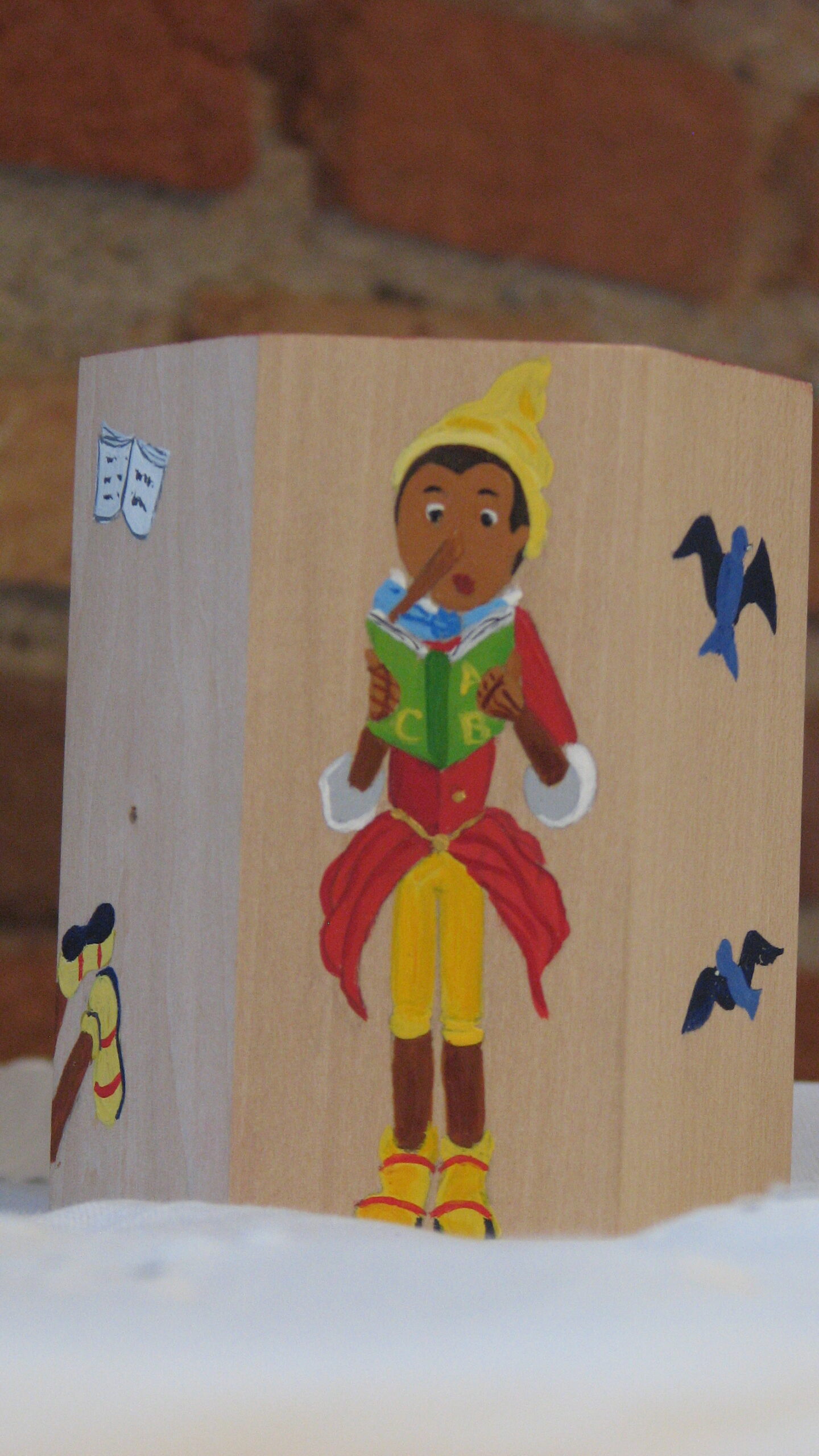 Ce pot est en tilleul. C’est à Florence, patrie de Carlo Lorenzini, auteur de la légende de Pinocchio, que j’ai trouvé ces illustrations originales qui conviennent bien à une chambre d’enfant.