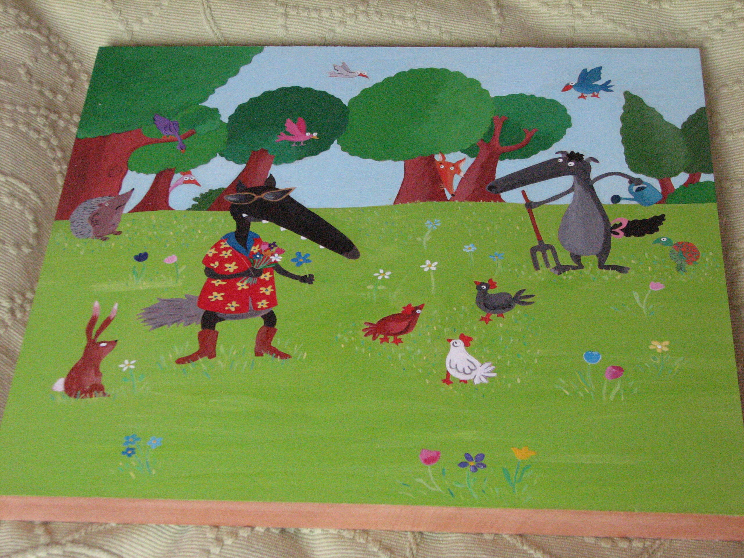Les enfants n’ont plus peur des loups grace à ces histoires de gentils loups. Ici , Madame loup offre un bouquet de fleurs à Monsieur loup qui fait son jardin et donc aime beaucoup les fleurs!